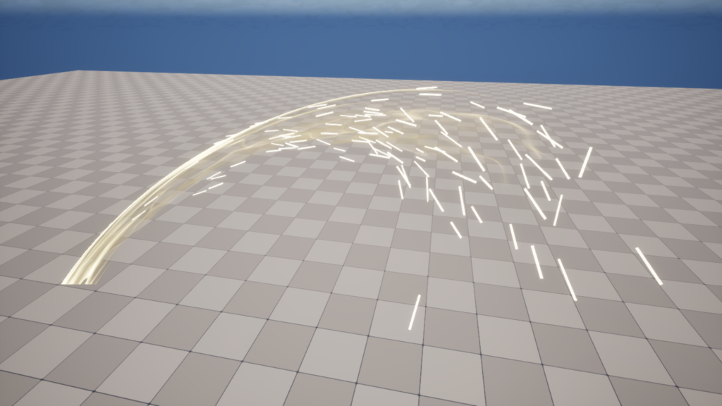 The light green box visualizes the 2x2x2 Neighbor Grid3D, which is implemented within the same Niagara System. However, this visualization is not directly related to the core explanation, so we will not discuss it here.